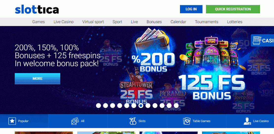 Slottica to w pełni licencjonowane i legalnie działające kasyno online, oferujące graczom z całego świata, w tym z Polski, dostęp do setek gier hazardowych, atrakcyjnych promocji i nowoczesnych funkcji. Platforma przyciąga zarówno początkujących, jak i doświadczonych graczy swoją prostotą obsługi, szybkim działaniem oraz gwarancją bezpieczeństwa.